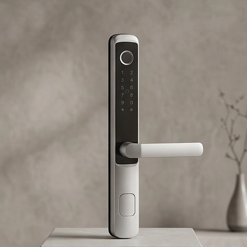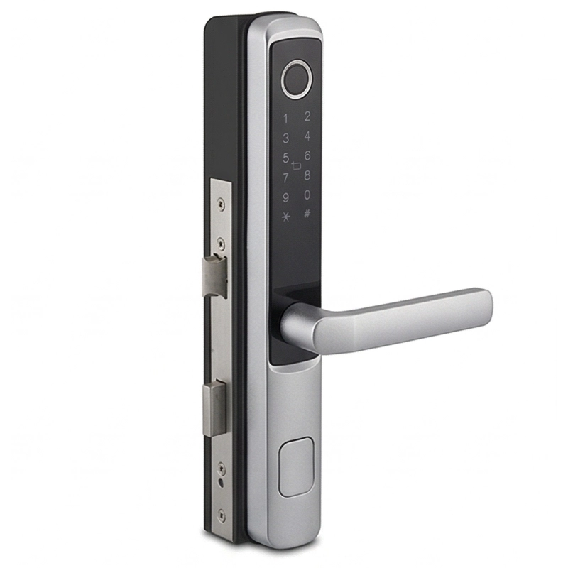 Orin Smart Villa & Apartment Lock WV-6919, Silver Finish, Semiconductor Fingerprint + Mifare Card + Password + Key + Tuya / Smart Life App Control, 4x AA Battery Power, Cylinder Security Level C, Door Thickness 35–70mm
