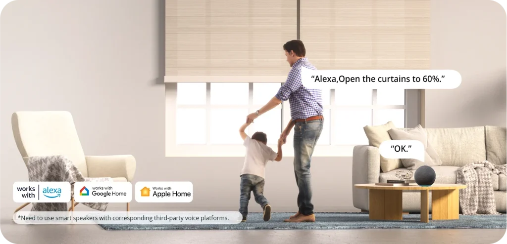 【Matter Compatibility】This curtain retrofit device ensures compatibility with multiple platforms and their devices, breaking down the ecological barriers with third-party platforms.
