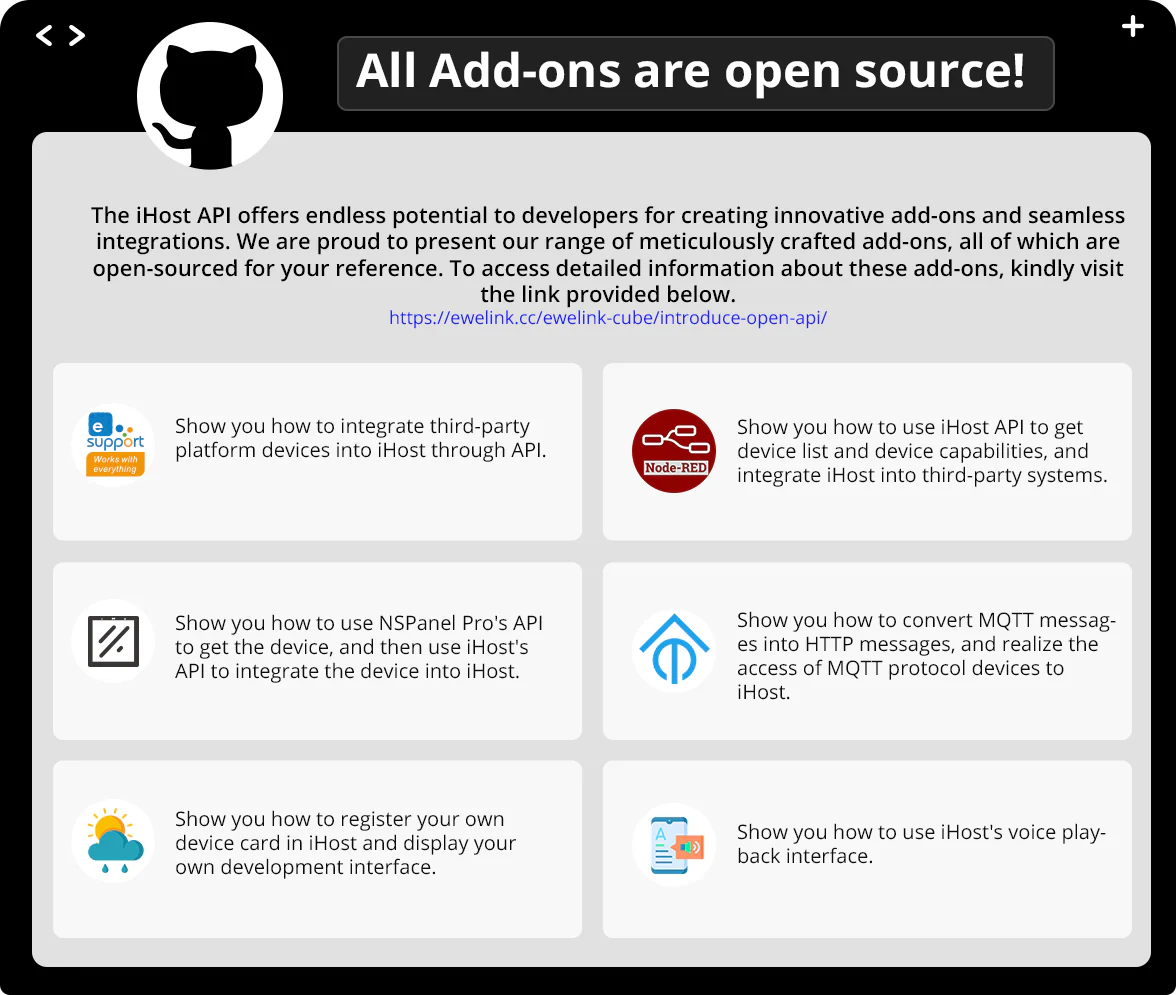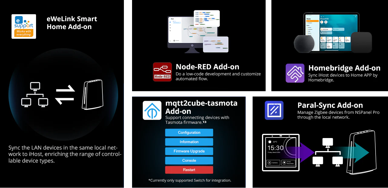 iHost can work as an eWeLink-Remote Gateway, allowing you to add R5 or S-mate devices. By creating smart scenes,