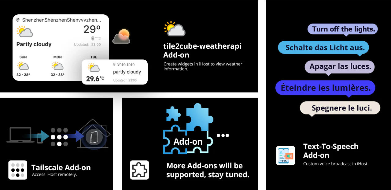 By installing different Add-ons, you can expand the functionalities of iHost and bring in new capabilities.