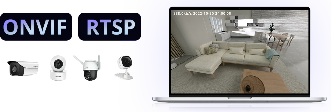 Search and add ONVIF or RTSP cameras within the local network to view surveillance footage at any time on the center console.