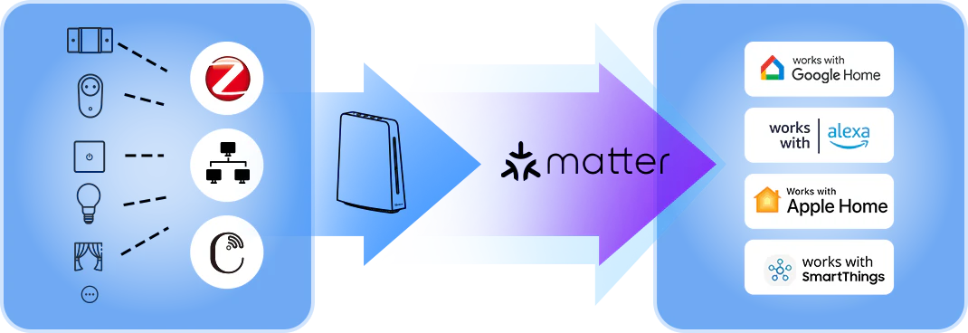 You can synchronize various devices within iHost to platforms such as Alexa, Google Home, Apple, and others using the Matter bridge. Make the non-Matter protocol devices to be used in the platform that supports Matter.