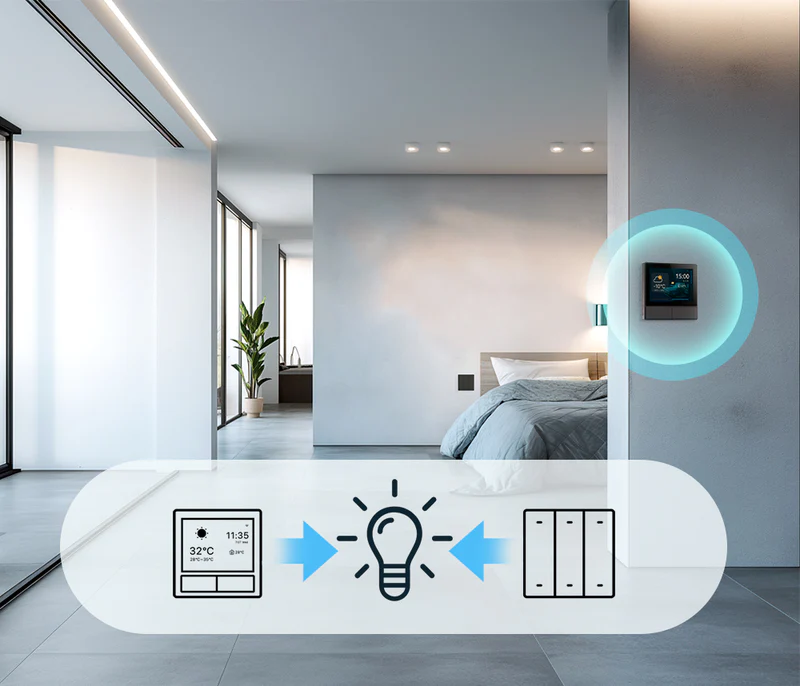 【Temperature Control】Featuring an intelligent thermostat, NSPanel lets you schedule temperature settings throughout the day. It automatically controls your heating or cooling devices to maintain a comfortable indoor climate.
