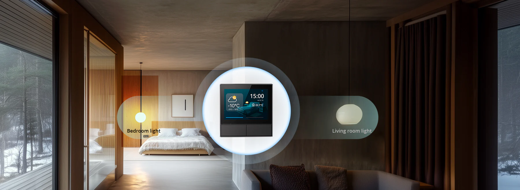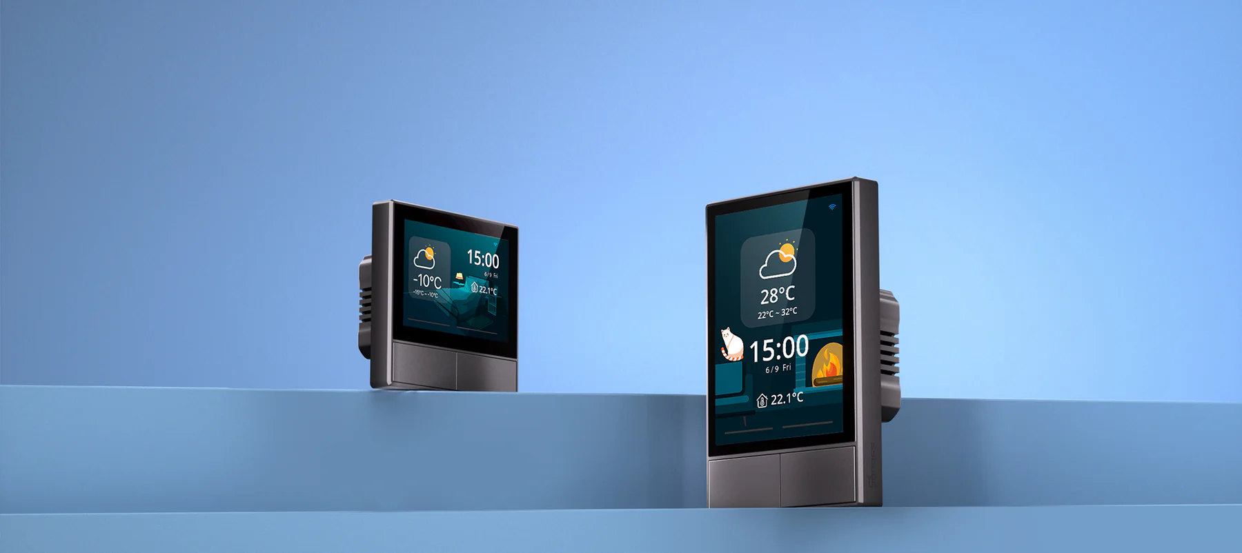 【Time & Weather Display】With built-in sensors and Wi-Fi connectivity, NSPanel displays real-time weather, indoor/outdoor temperatures, time, and date—right on your wall.