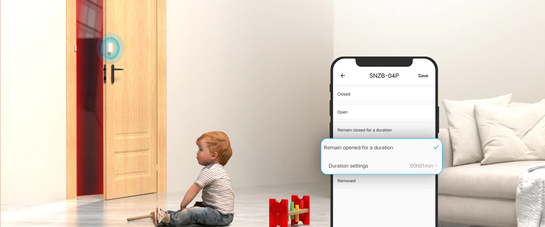 【Door & Window Monitoring】Automatically turns on lights when a door or window is opened. Triggers audible and visual alarms for unauthorized entries and sends instant app notifications to keep you informed.