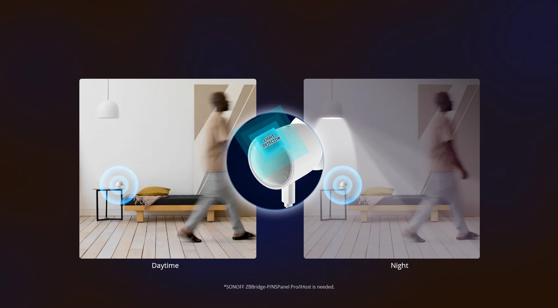 【Ambient Light Sensing】Built-in light sensor ensures lights only activate when presence is detected in low-light conditions, helping you save energy.