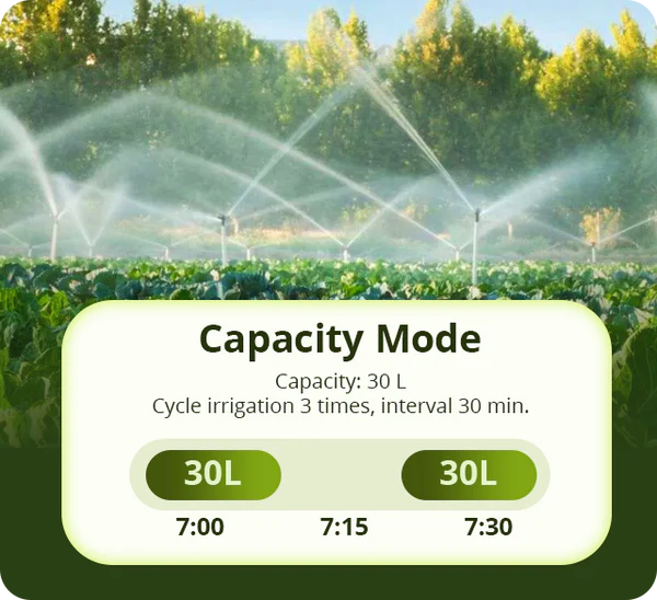 【Customizable Irrigation Plans】Supports schedule and capacity modes with both single and cyclic irrigation options, enabling precise watering tailored to your plants’ needs.