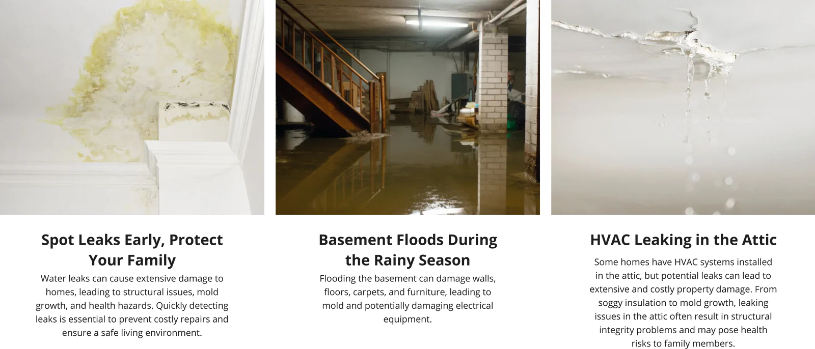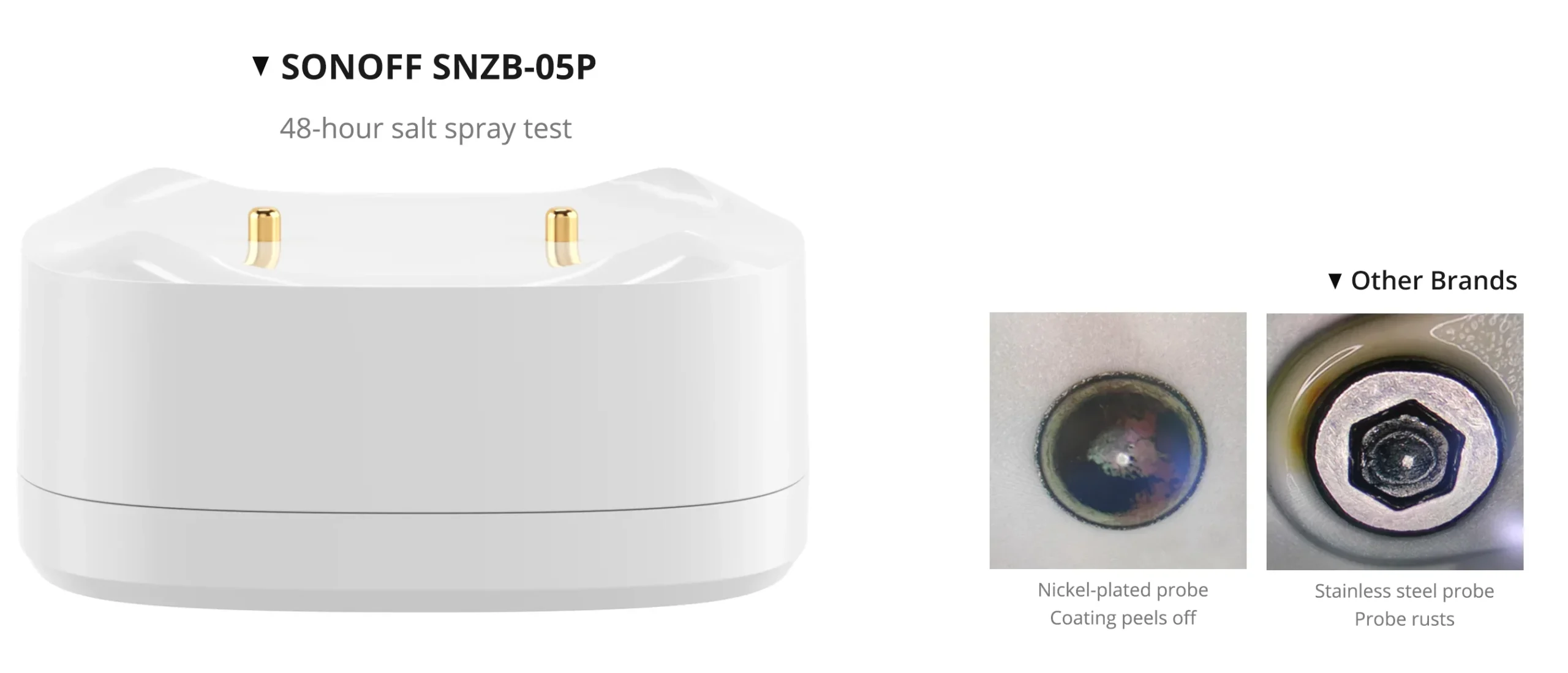 【Leak & Drip Detection】The elevated probe design detects liquid levels as low as 0.5mm and works reliably on metal surfaces without false triggers. Its concave water collection design quickly senses drips and stops leaks at the source.