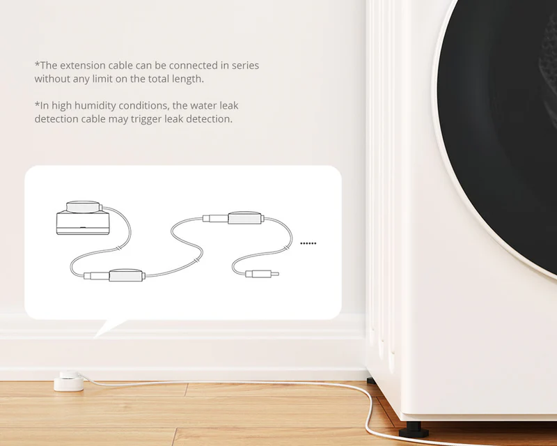 【Extended Detection Capability】Supports connection with water leak detection cables (sold separately or as part of sensor kits). Whether covering a wide area or a narrow spot, water leaks are detected accurately. Extension cables can be connected in series without length limitation.