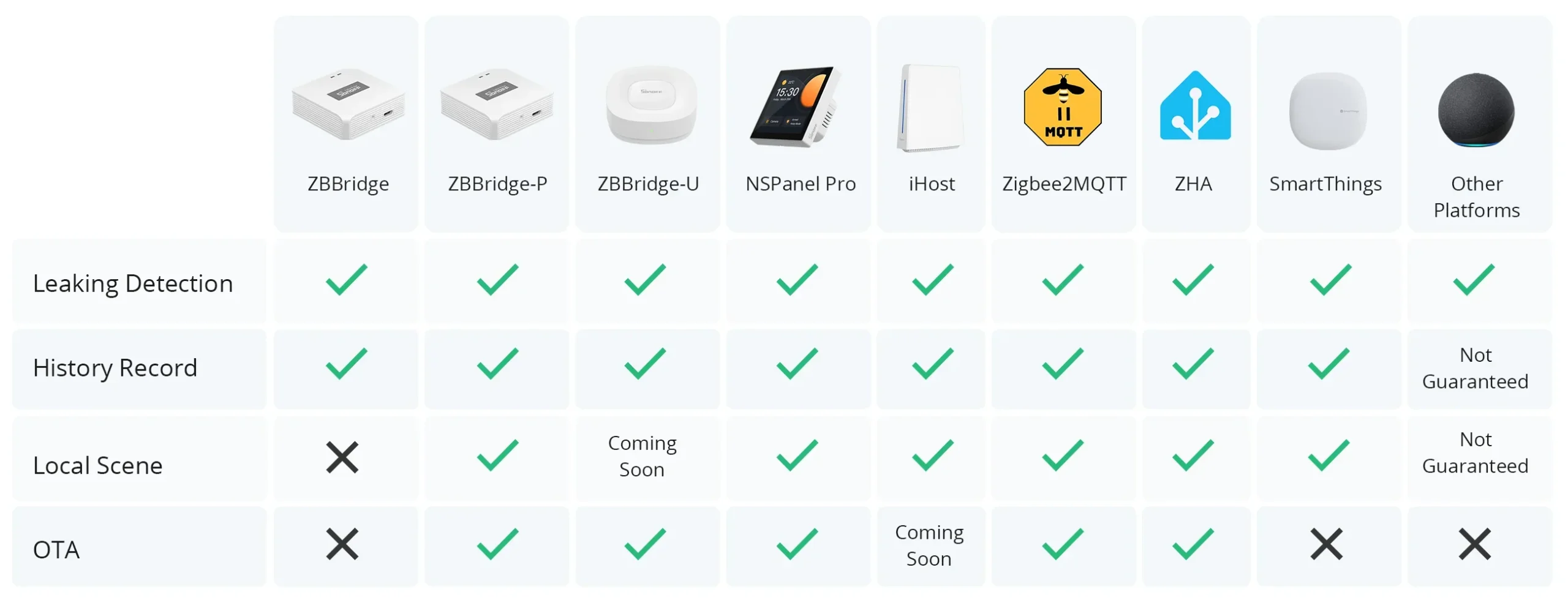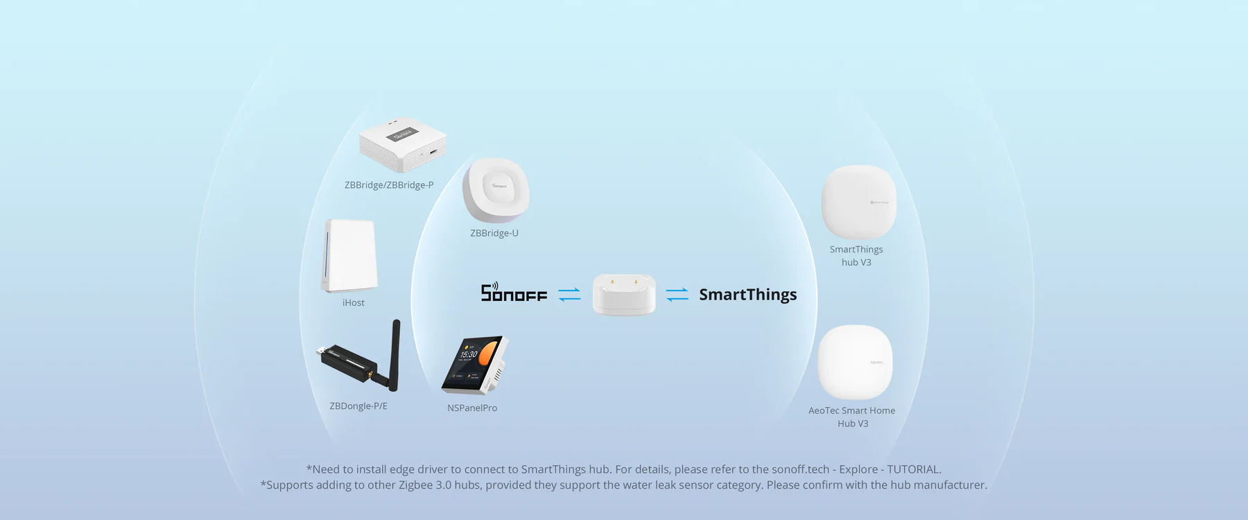 【Zigbee 3.0 Compatible】Compatible with Zigbee 3.0 hubs such as SONOFF NSPanel Pro, SONOFF iHost, ZB Bridge variants (ZB Bridge, ZB Bridge-P, ZB Bridge-U), and SmartThings Hub V3.
